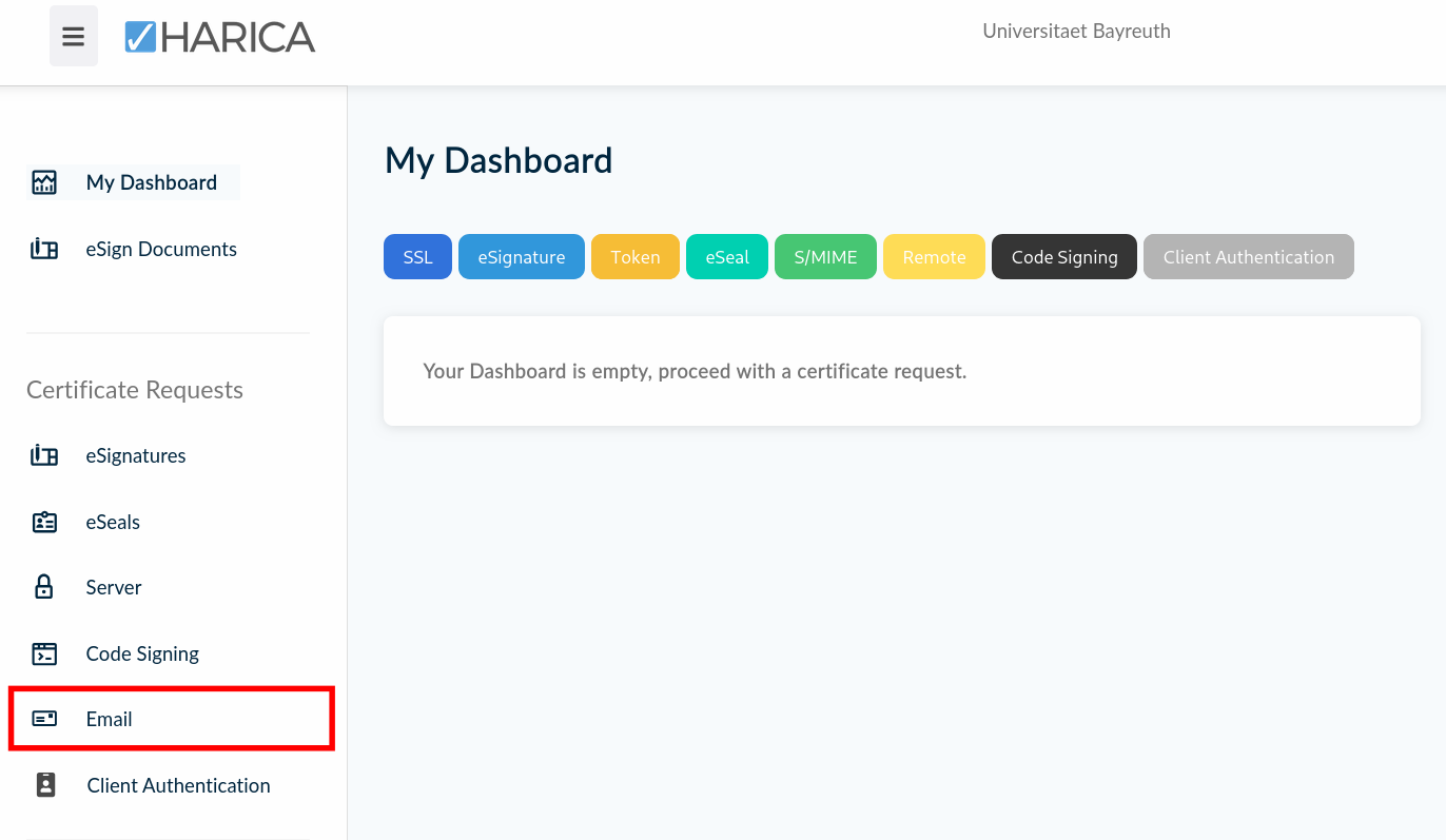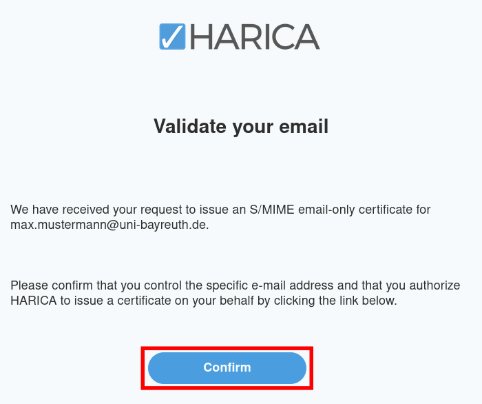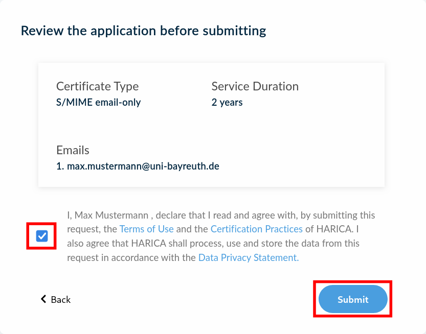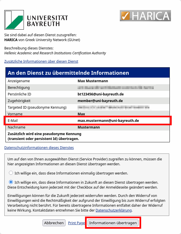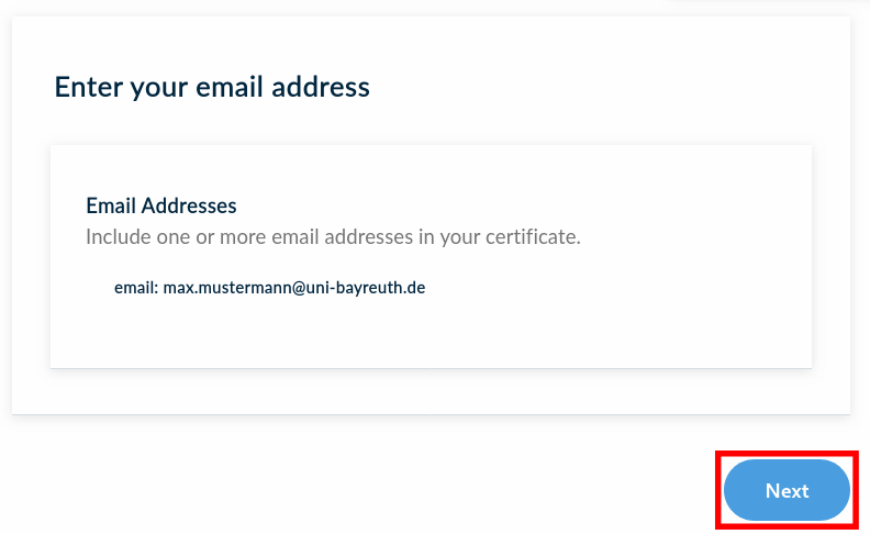 Now think of a secure passwort that will be used to encrypt your certificate – it is independent from your Uni Bayreuth user account password.